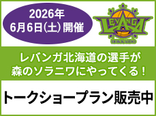 - 【6/6 (土)開催】レバンガ北海道 選手トークショー付プラン販売開始!(於:森のソラニワ)